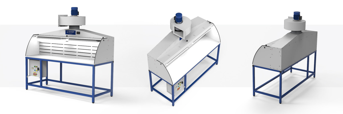 Da die lokale Absaugung bei der Emission gefährlicher Produkte immer Vorrang haben muss, hat STIVENT INDUSTRIE® ein Sortiment von Saugwerktischen mit Aufkantung entwickelt.